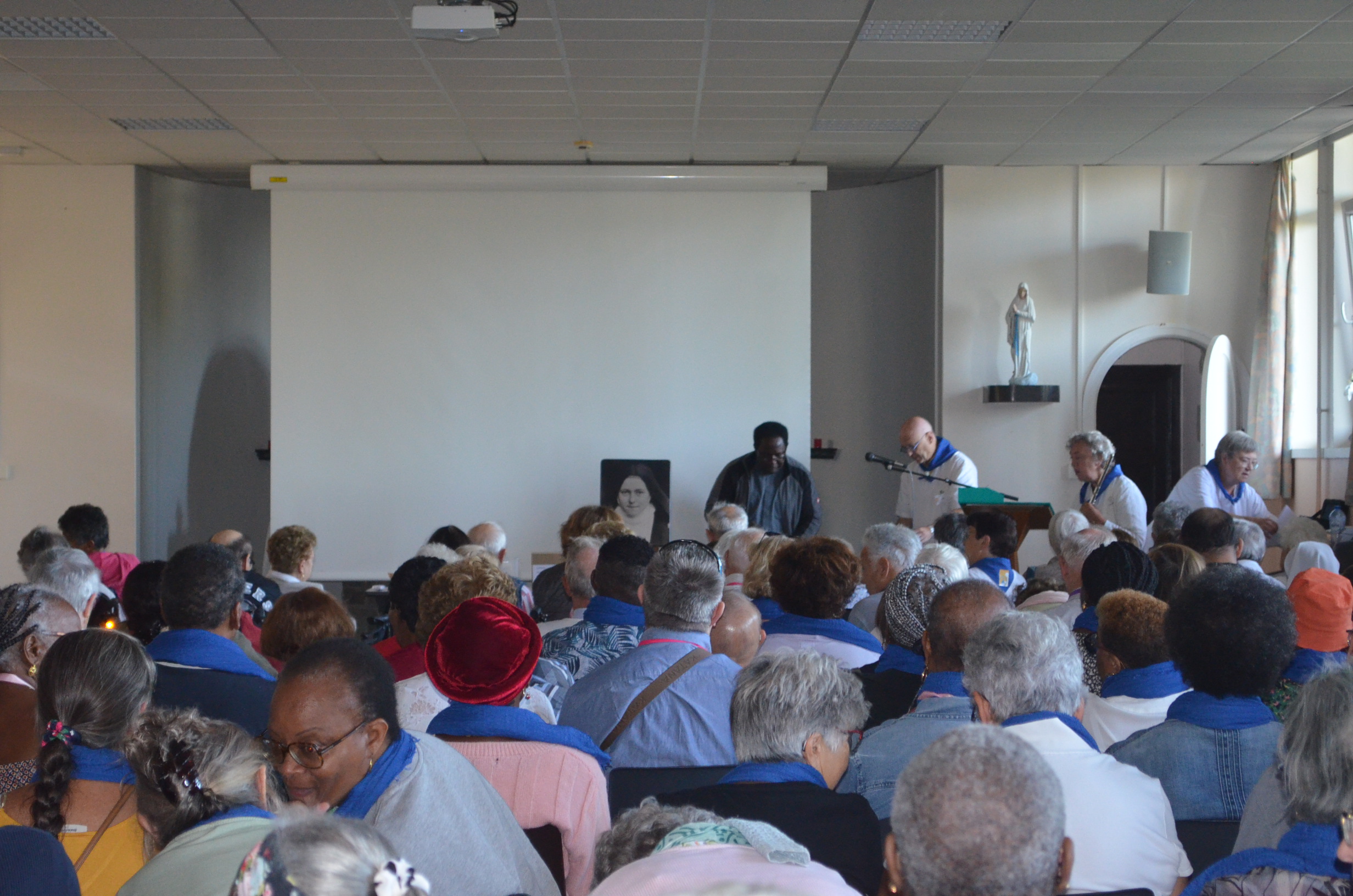 Le Père Aimable nous a parlé de Ste Thérèse de Lisieux, de sa vie et de sa ferveur. Les quatre « formations » par lesquelles elle est passée pour être qui elle était, nous les vivons aussi. (L’entourage que Dieu nous donne, ce qu’il met en nous de qualités et de compétences, l’éducation que l’on reçoit et les imprévus de la vie auxquels nous sommes confrontés.) Nous devons être à l’écoute, attentif à ce que nous pourrions faire pour Dieu. « C’est la confiance et rien que la confiance qui doit doit nous mener à l’Amour. »