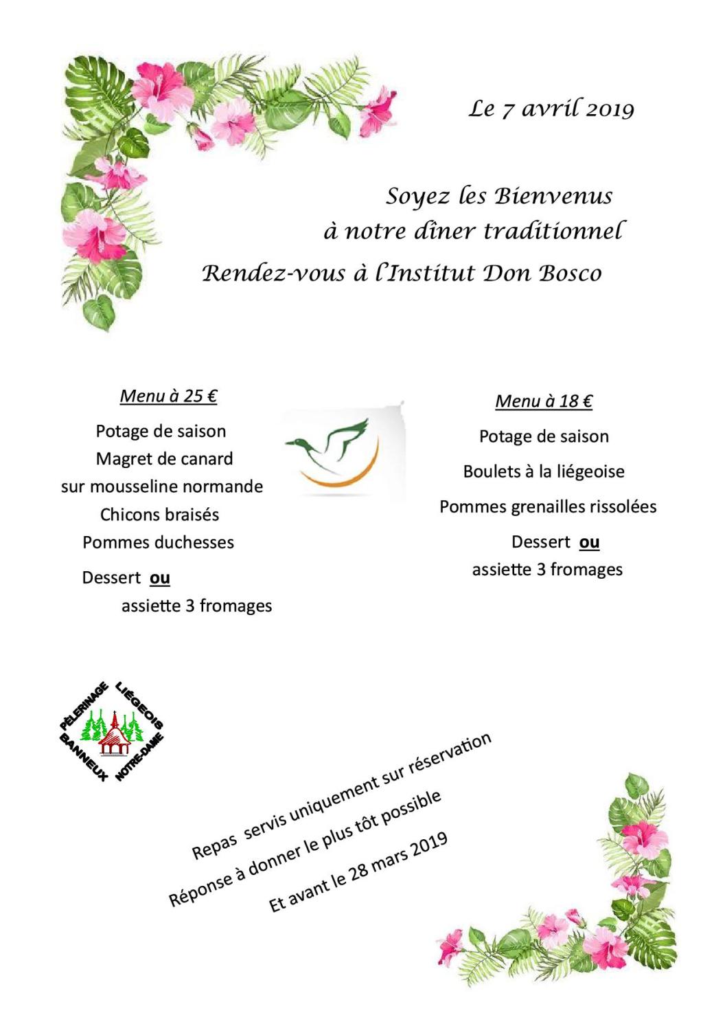 Nous avons le plaisir et la joie de vous inviter à notre dîner annuel. Celui-ci est devenu une tradition grâce à la fidélité généreuse des bénévoles et à votre présence assidue. Beaucoup de participants au triduum que nous organisons à Banneux ne sont pas à même de payer l’entièreté de la contribution demandée. Le dîner annuel est organisé pour permettre cette prise en charge.