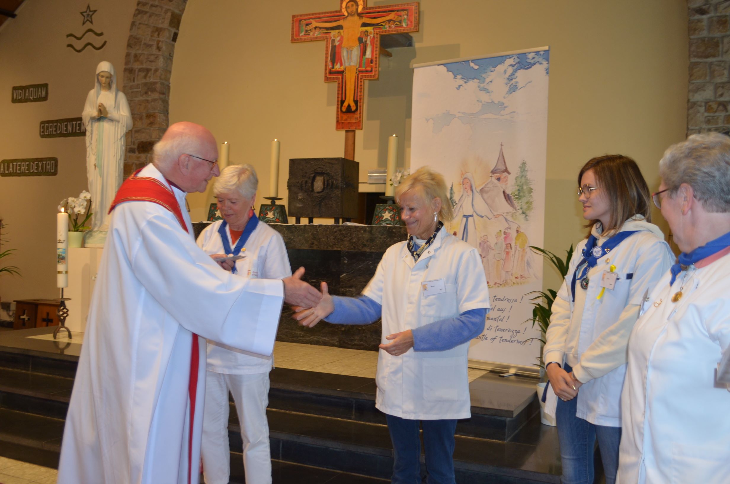 Elle nous exhorte à aller raconter ce que nous avons vécu au Triduum, à partager la bonne nouvelle de la joie et de la tendresse de Dieu. Le pèlerinage a débuté avec tous nos visages placés sous le voile de tendresse de Marie. Allons maintenant porter ces sourires au-delà de Banneux vers nos lieux de vie.